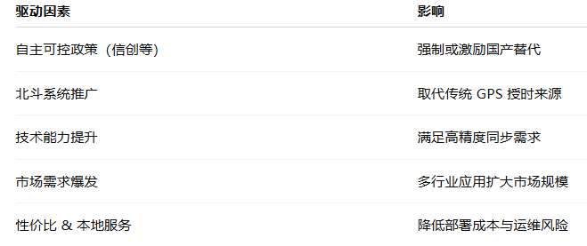 自主可控、安全性和政策導向是國產NTP設備推廣的重要驅動力。