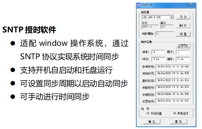 ●用于對HJ2000B設(shè)備中NTP服務(wù)的詳細監(jiān)控; ●可監(jiān)視HJ2000B服務(wù)器自身的狀態(tài)信息,包括同步狀態(tài)、時間偏差、層次信息等; ●可監(jiān)視北斗/GPS參考源信息,包括鎖定狀態(tài)、定位信息等; ●可監(jiān)視NTP客戶端訪問情況和時間偏差; ●支持時間偏差門限告警、失鎖告警和狀態(tài)切換告警; ●支持SNMP、syslog、Email等告警方式; ●支持服務(wù)器集群服務(wù)質(zhì)量監(jiān)測和優(yōu)選制動操作。 |